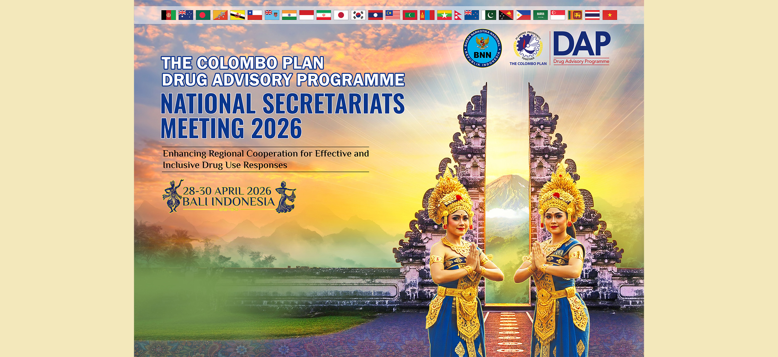 The Colombo Plan Drug Advisory Programme (CPDAP) in collaboration with the National Narcotics Board (BNN) of the Republic of Indonesia will convene the Colombo Plan Drug Advisory Programme National Secretariats Meeting 2026 (CPDAP NSM 2026) from 28-30 April 2026 in Bali, Indonesia.