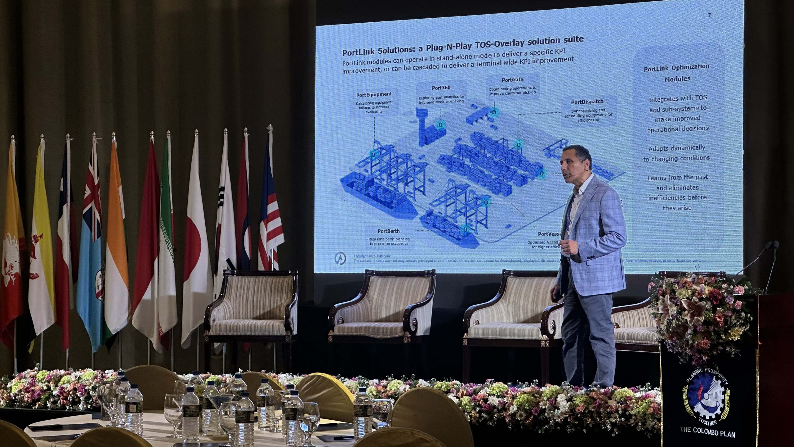 A key highlight of the programme was the panel discussion on “AI in Container Terminals – Hype vs. Reality.” Moderated by Mr. Ramana Jampala, Chief Executive Officer of Avlino, the session explored the evolution of Artificial Intelligence in terminal operations, separating industry hype from operational realities and outlining a practical roadmap toward AI-driven decision-support systems. The distinguished panel featured Mr. Darshan Gunawardena, Director – Technology & Transformation (AI & Data) at Deloitte; Mr. Gauthaman Vasudevan, Co-Founder and Chief Technology Officer of Avlino; and Mr. Munish Kanwar, Chief Executive Officer of Colombo West International Terminal. The discussion was complemented by a Technical Workshop on AI-Based Optimization conducted by Mr. Ramana Jampala, providing hands-on insights into how advanced optimization and data-driven systems can enhance throughput, improve resource utilization, and strengthen operational efficiency.